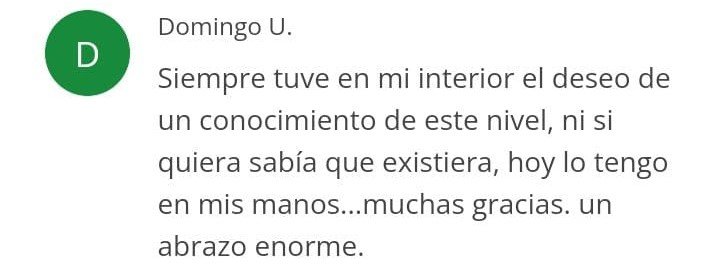“…Me ayudaste a descubrir un camino hacia la abundancia, no solo material, sino lo más importante, abundancia espiritual. Es realmente maravilloso sentirse en sintonía con el universo…”