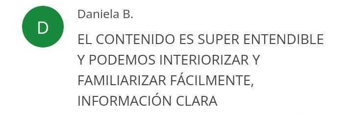 “…Recomiendo esta formación, la plataforma es muy intuitiva y completa, con guías y recursos que complementan las lecciones. También he tenido la oportunidad de comunicarme con otros estudiantes, lo que ha enriquecido mi proceso de aprendizaje…”